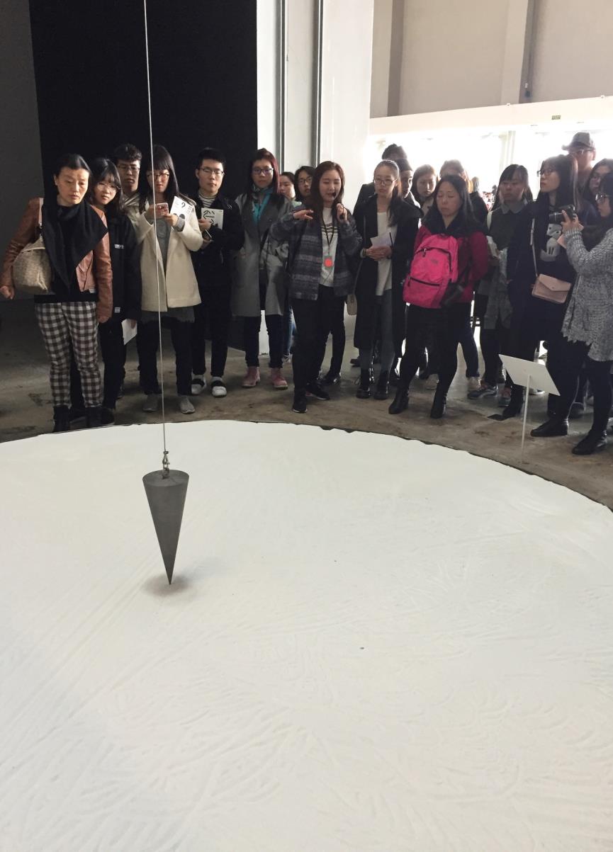 本次活动由实验教学中心王思萍老师带队,包括教学系倪敏娜老师在内的近30名师生在2013级产品设计系左怡凡同学的引导下,参观了来自世界各地众多艺术家的参展作品。左怡凡同学是PSA的志愿者,对本次双年展的策展、参展艺术家及其作品有相当的了解。基于丰富的知识面和对艺术作品的热爱,她为我们带来了一次生动形象且富有魅力的看展之行。
