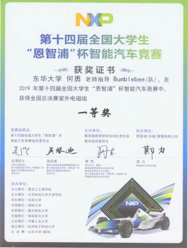 8月25日,2019年第十四届全国大学生“恩智浦”杯智能汽车全国总决赛在山东大学威海校区落下帷幕。由新葡萄官网AMG学生田威、张莲茹等组成的室外电磁组团队继在华东赛区预选赛中获得一等奖后,在何勇教授的指导下经过激烈角逐,获得全国总决赛一等奖。这是新葡萄官网AMG学生首次在该项赛事中获得佳绩,实现历史性突破。
