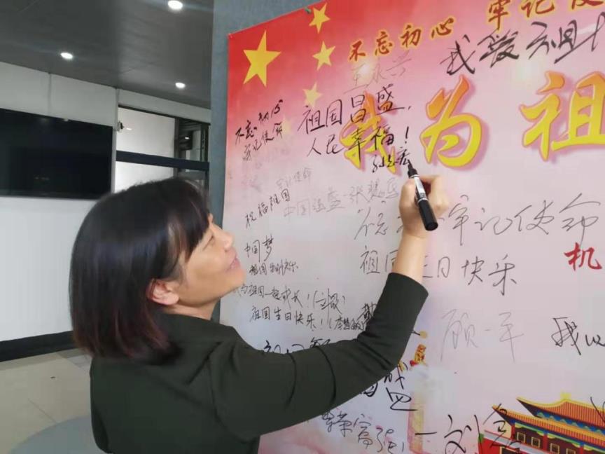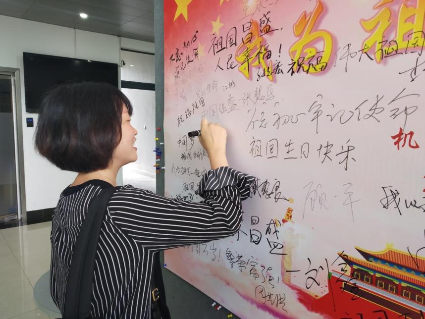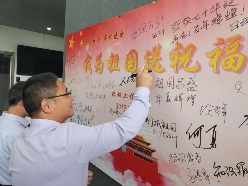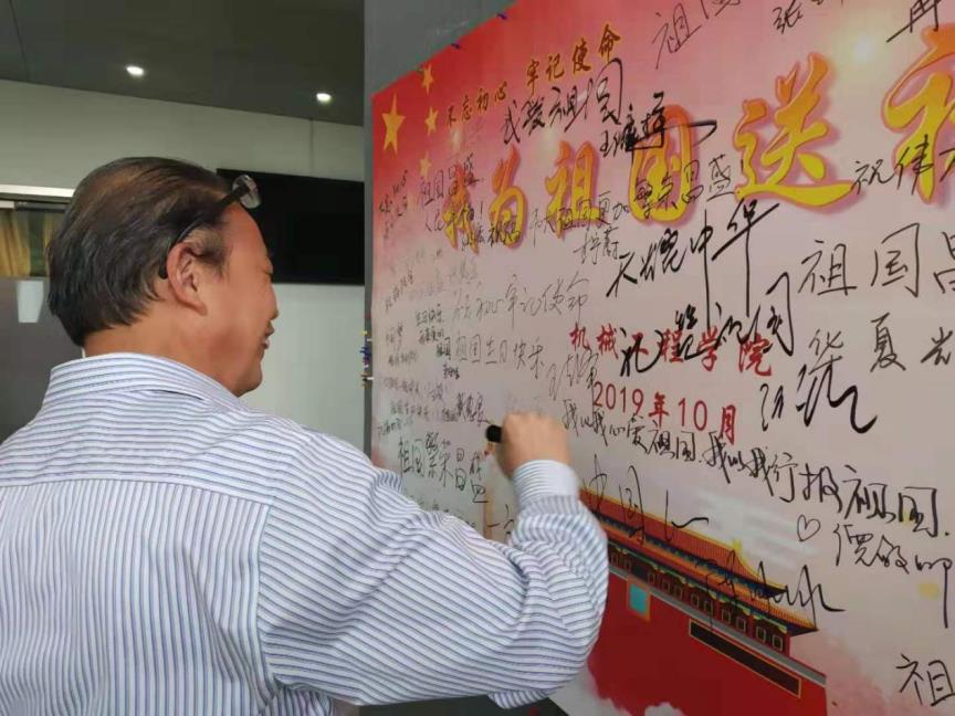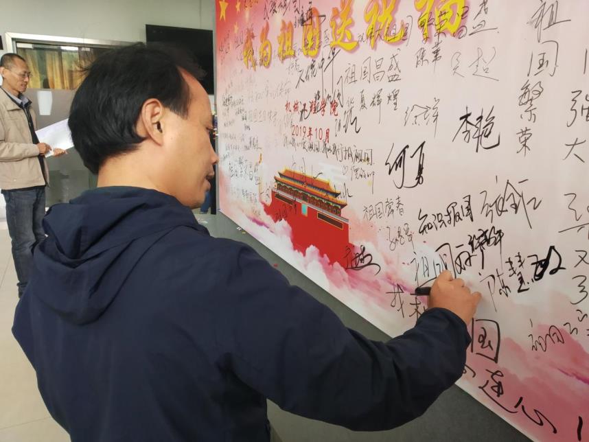 参加本次活动的老师,有现任学院领导,也有卸任的学院领导;有在职的老师,也有已经退休的老师。激情心头涌,敬意笔尖流,在三个小时的时间里,大家将祝福墙壁写得满满当当,将对祖国的祝福与赞美表达得淋漓尽致。