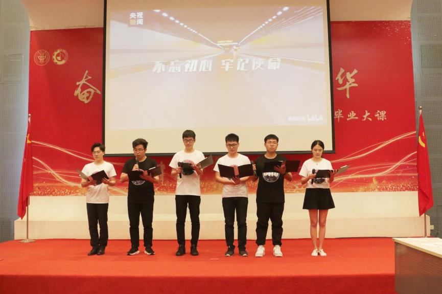 活动最后,毕业生代表齐诵《我是中国青年》,师生们在诗歌中回忆党的峥嵘岁月与奋斗历程,表达对党和国家的热切祝福与自豪之情,牢记“崇德博学、砺志尚实”的东华校训,胸怀理想、志存高远,坚定做新时代的奋斗者、追梦人。