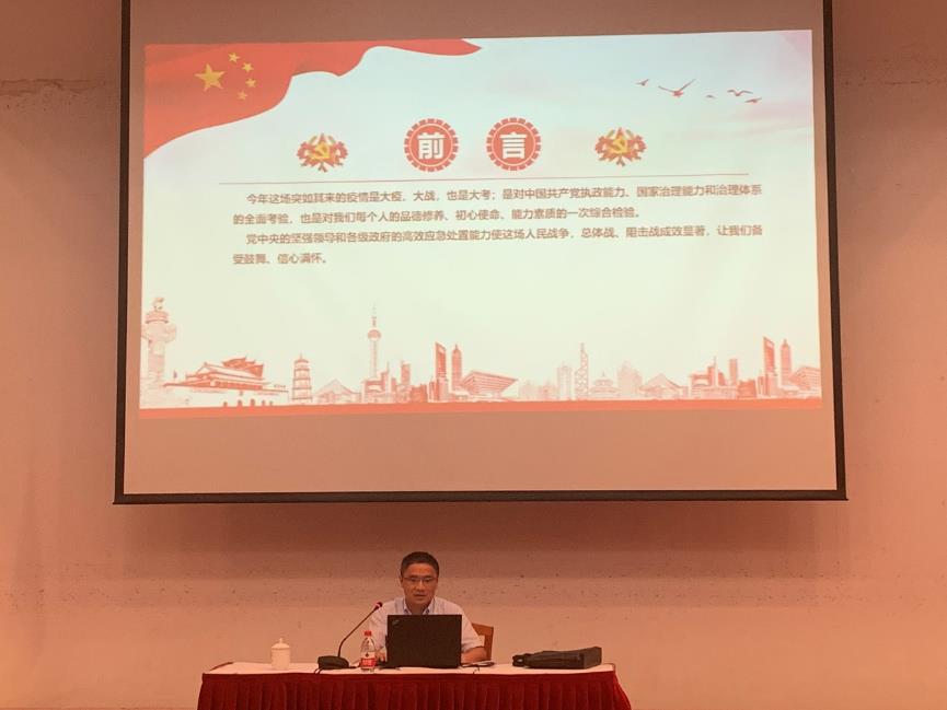 7月8日下午,在中国共产党成立99周年之际,根据学校基层党组织常态化疫情防控“四个一”行动的部署,新葡萄官网AMG党委书记张千里同志为学院党员讲授常态化疫情防控专题微党课《透过战“疫”,我们应当看到的……》。