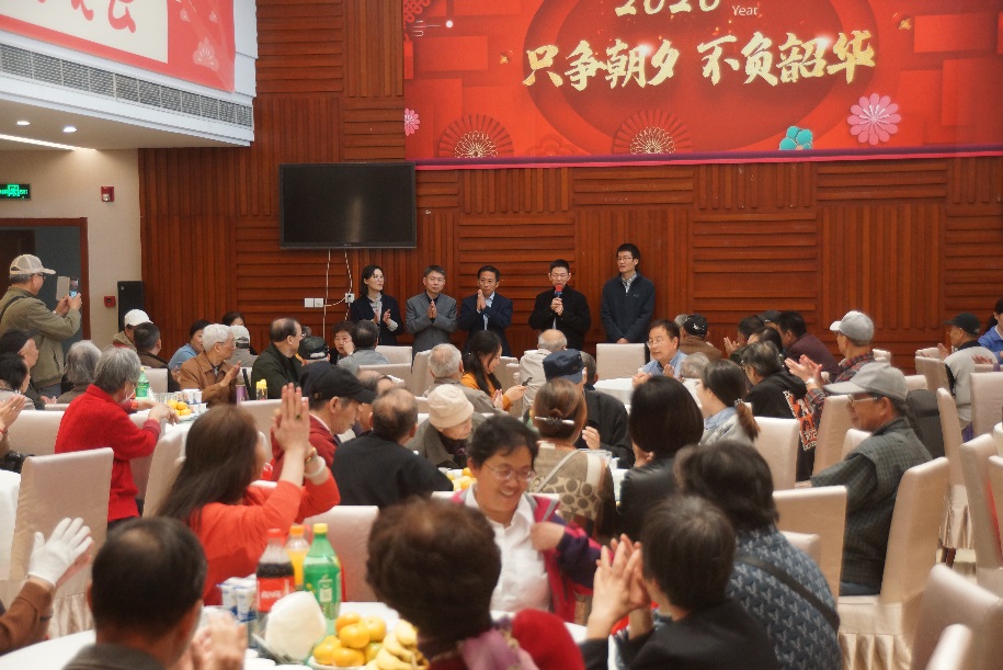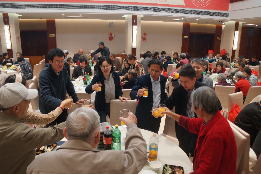 余热未尽献,老骥偷闲。古梅无他求,点红暖人间。一百一十多位退休职工从上海各区赶来,欢声笑语、齐聚一堂。王书记、单院长等学院领导逐一问候每位老同志,向其表达全院师生的关心与问候。