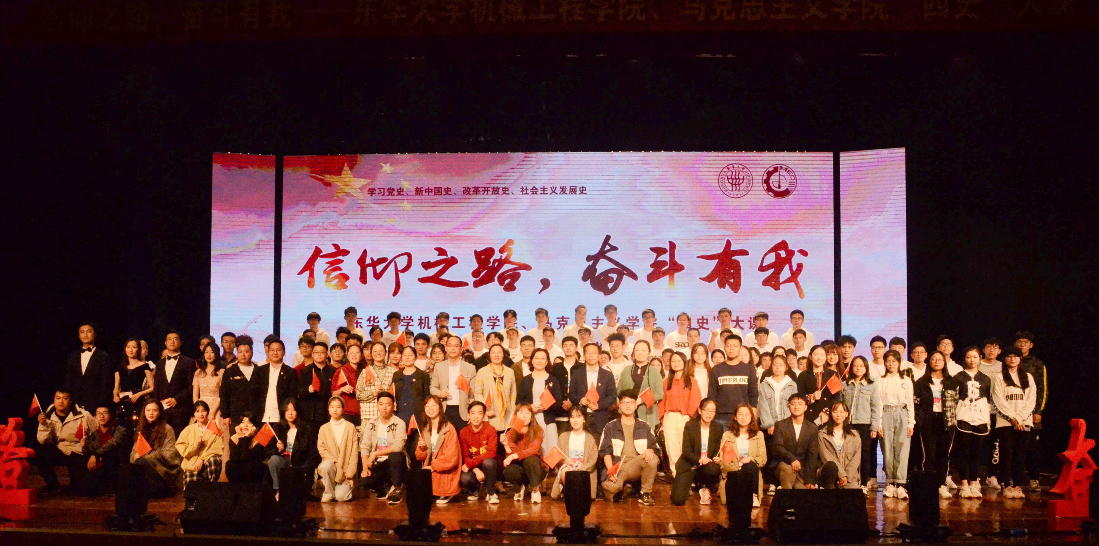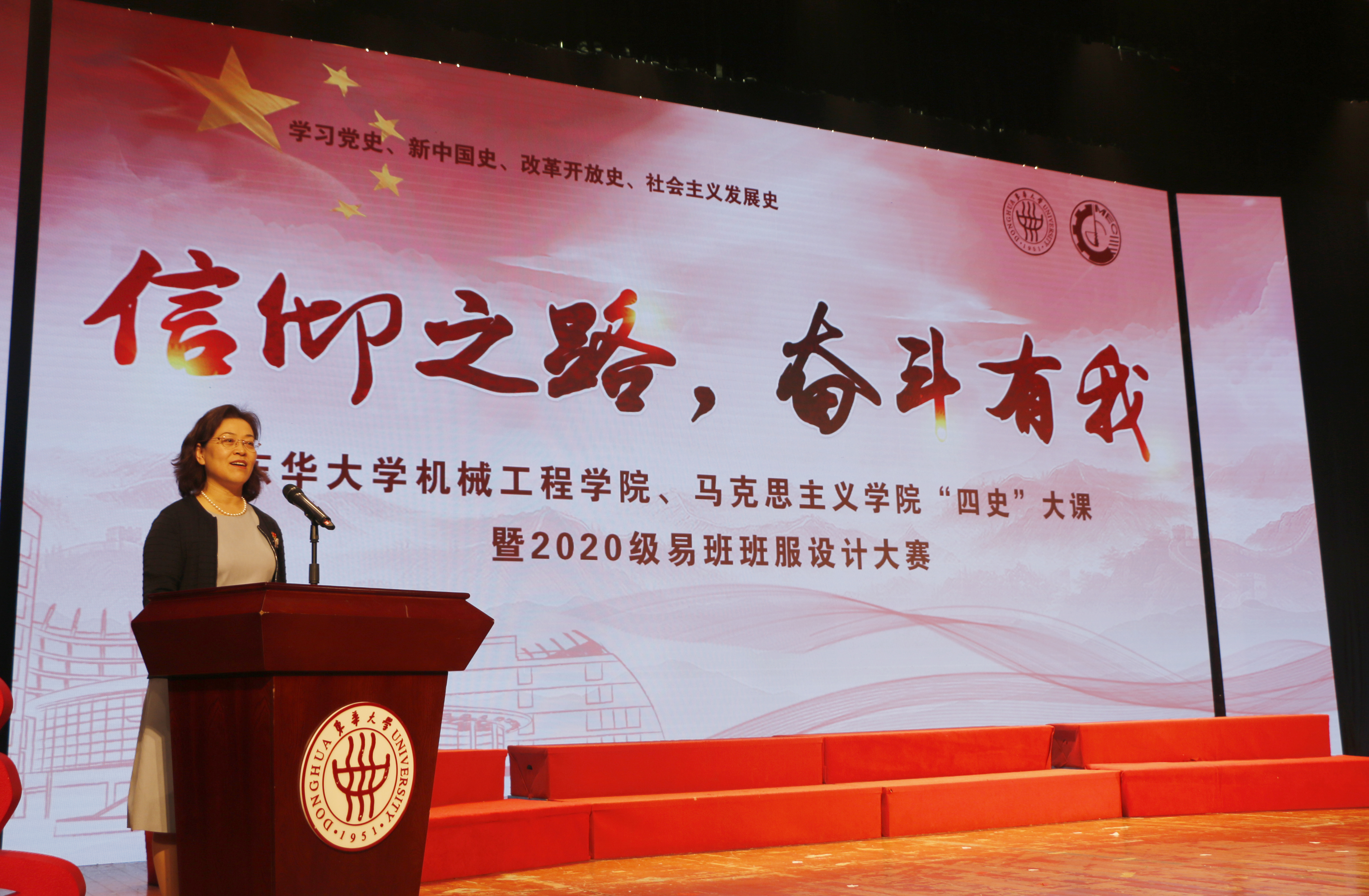 “日月辉映,孕育灿烂人类文明;经天纬地,织就绚丽锦绣中华……”伴随着《东华之歌》的悠扬旋律,新葡萄官网AMG、马克思主义学院“信仰之路,奋斗有我——‘四史’大课”于11月3日在松江校区锦绣会堂拉开帷幕。从老一辈华纺人到新一代东华人,穿越时空的记忆,以共同的“东华人”身份,演绎党的辉煌历史,在砥砺奋进中续写新的时代华章。校党委副书记崔运花出席大课并致辞,新葡萄官网AMG党委书记王新厚、马克思主义学院党总支书记戴叶萍、党委组织部副部长、党校副校长徐玥、学生处副处长赵彦明及两学院党员师生、全体20级新生参加大课。