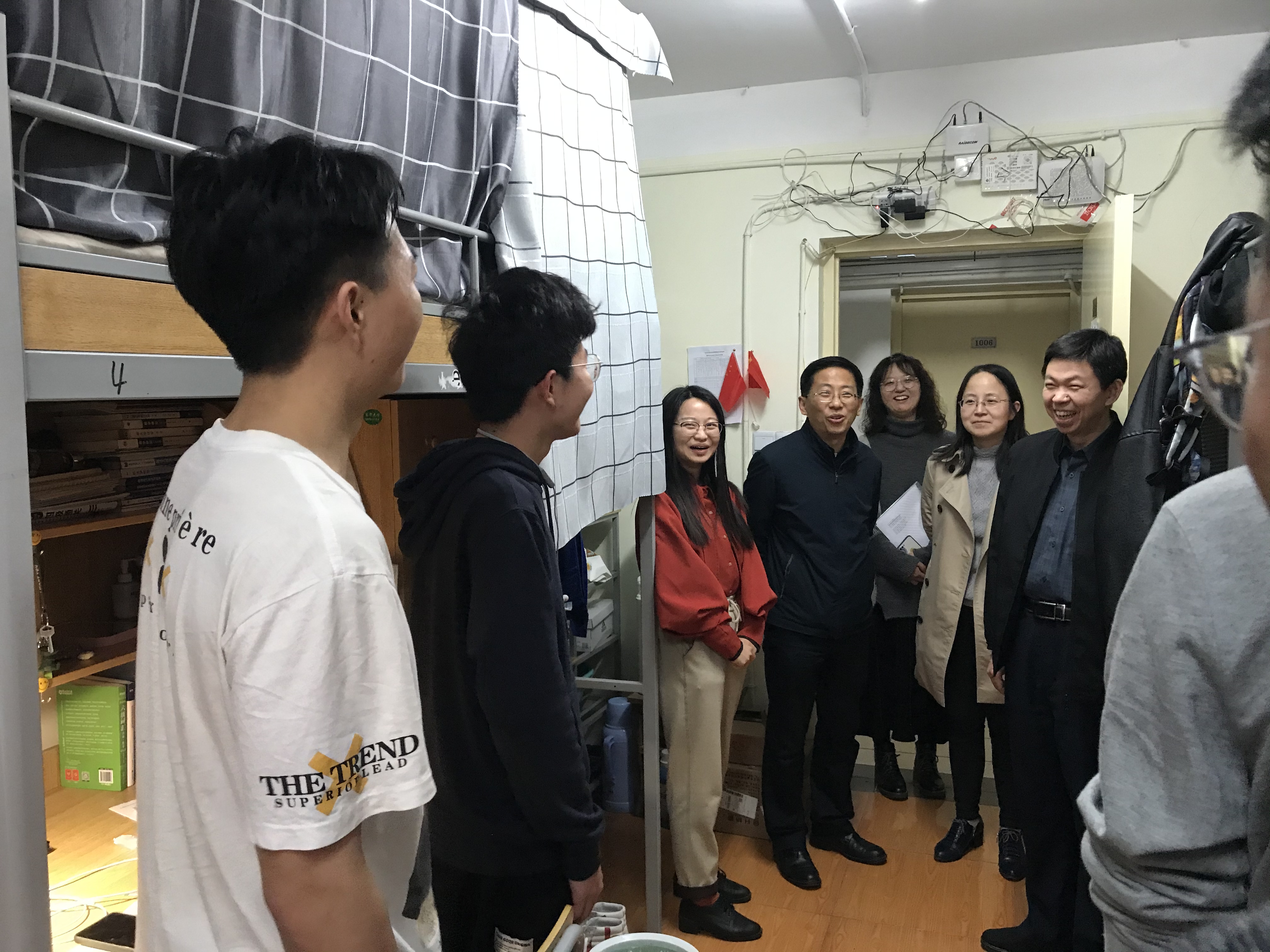 为广泛听取学生的建议和心声,加强学生宿舍学风建设和安全管理,把“我为群众办实事”落到实处,近期,新葡萄官网AMG党委书记王新厚老师,党委副书记、院长单鸿波老师,党委副书记李宁蔚老师以及辅导员老师前往学生宿舍,针对前期收集反馈的学生反映的思想困惑和在学业、就业等过程中遇到的实际问题,给予了回应和有建设的指导和意见。