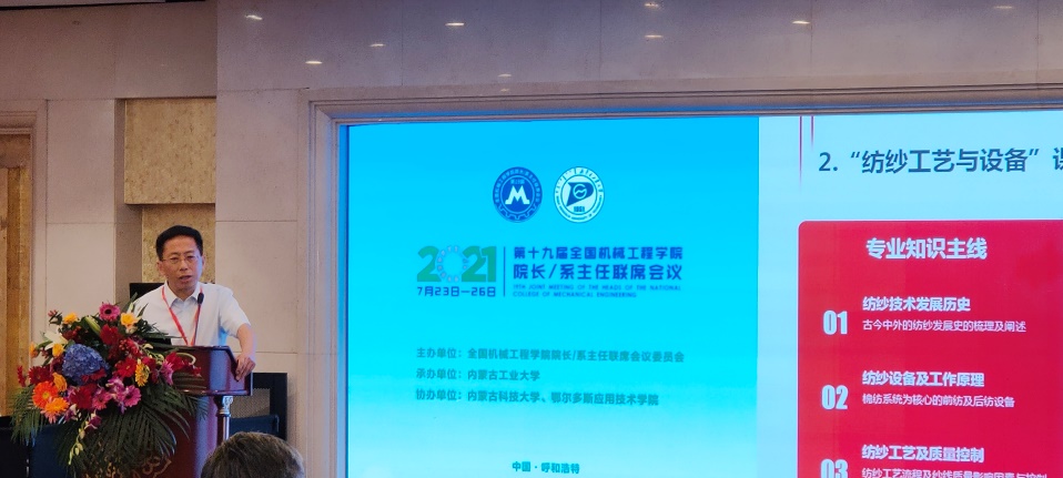 第十九届全国新葡萄官网AMG院长/系主任联席会议于723日至26日在呼和浩特召开,王新厚书记应邀在大会上做“专业课程思政教学设计之我见—以纺纱工艺与设备为例”的专业课程思政报告。
