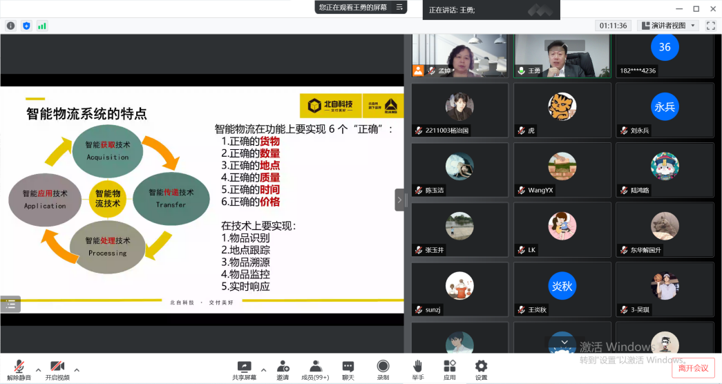本次讲座,王勇研究员围绕纺织行业“十四五”发展规划重点内容——新一代智能制造物流装备这一主题,从智能物流的概念、关键设备、核心控制和软件系统以及智能物流系统的发展等方面,结合具体的工程应用案例,全面介绍了智能物流仓储系统发展趋势及目前应用的情况,详细阐述了物流系统与物联网的关系以及智能物流关键技术在智能制造中的重要作用。王勇研究员向参会师生展示了工程案例以及演示动画。