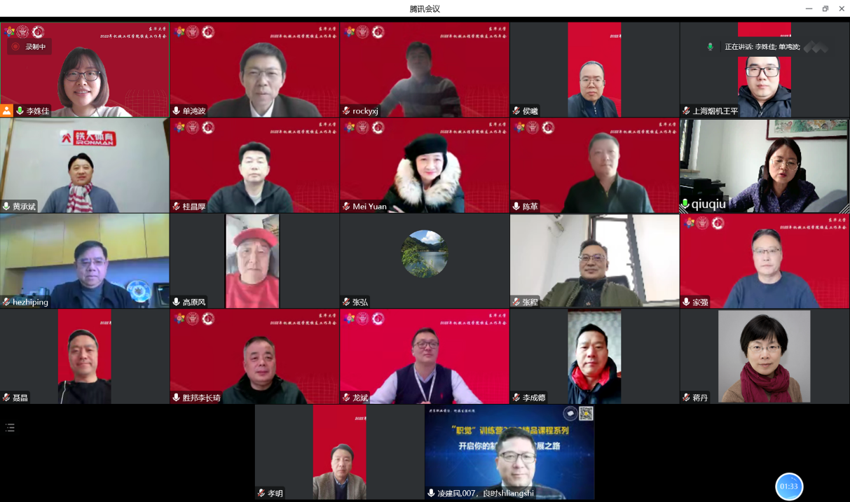 2022年12月29日,学院校友会理事会2022年度工作会议于线上召开。新葡萄官网AMG校友会执行会长、副校长陈革,新葡萄官网AMG校友会会长、中国华建投资控股有限公司董事长何志平,学院校友会副会长兼秘书长、学院院长单鸿波,以及中国毛纺协会会长刘家强、深圳市驰通达集团董事长万腾驰、南通铁人运动用品有限公司董事长黄承斌、上汽集团副总工程师张程、浙江绍兴天普纺织有限公司总经理李成德、加拿大芝秀国际贸易公司总经理袁梅、用友汽车信息科技(上海)股份有限公司总经理桂昌厚、乐高中国研发总部总监聂晶等学院校友会副会长,深圳华联发展集团董事长董炳根、上海交通大学教授蒋丹、上海良时智能科技股份有限公司董事长凌建民、武汉裕大华纺织服装集团有限公司常务副总经理张弘、嘉兴胜邦机械设备有限公司总经理李长琦、陕西纺织器材研究所有限责任公司党委书记兼执行董事秋黎凤、中国纺织对外经济技术合作有限公司工程项目一部总经理徐坚、上汽通用汽车有限公司制造规划部白车身先期规划和集成经理龙斌、苏州锦晨智能科技有限公司副总经理王平、中国纺织机械协会副会长侯曦等学院校友会理事参加。