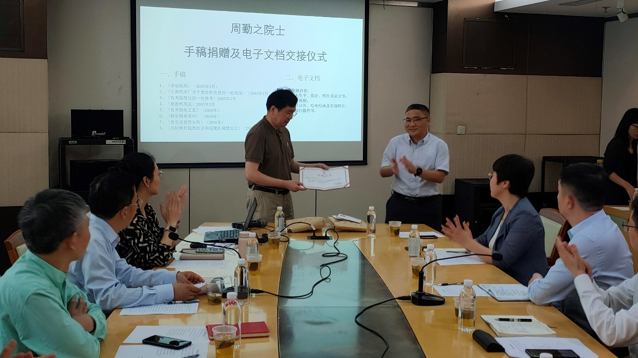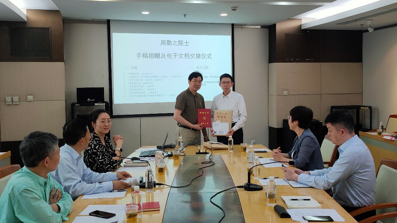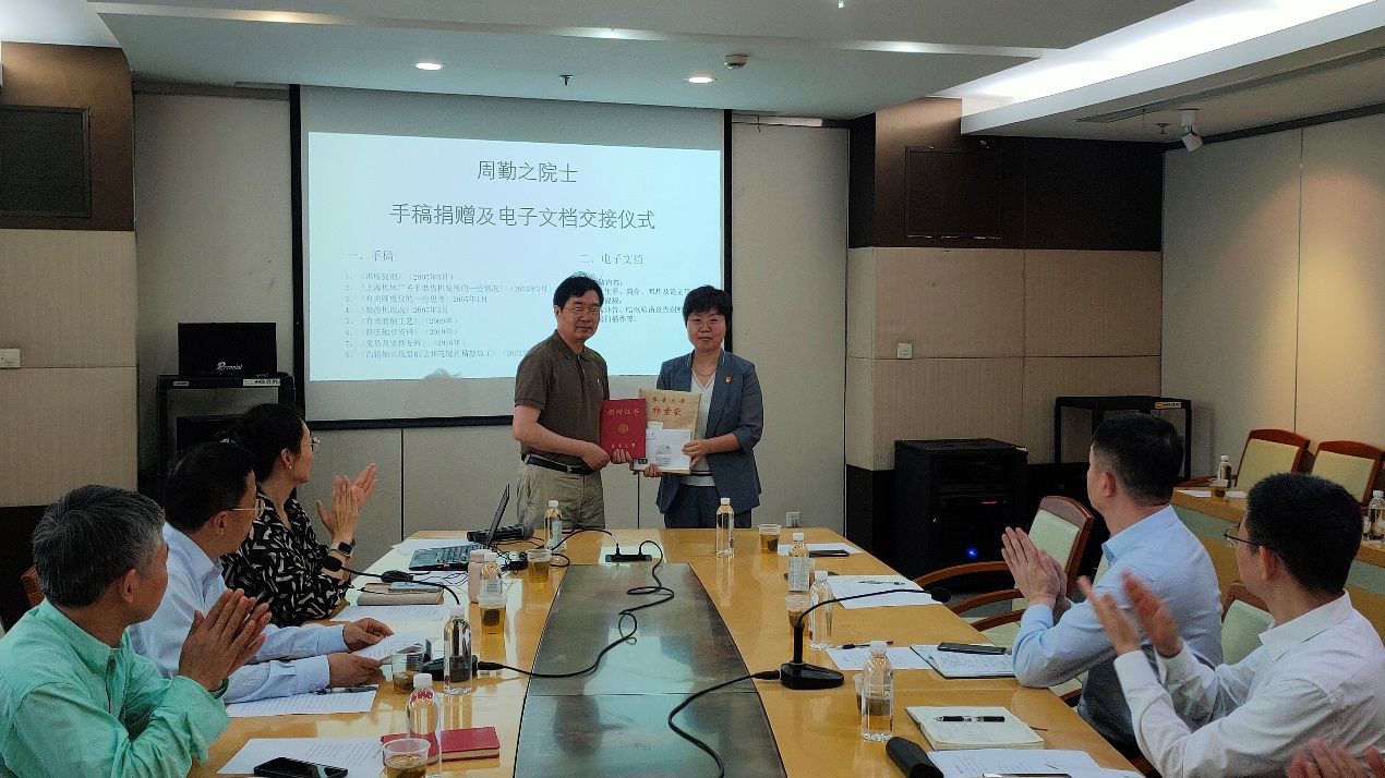 周勤之院士生前助理戴惠良副教授受周院士及其家人的委托,向新葡萄官网AMG档案馆捐赠周院士的手稿、书籍等资料。戴惠良回顾了与周勤之院士共事、学习的经历,他生动讲述,在周院士身上,充分体现了胸怀祖国、永攀高峰的科学家精神,将激励我们更加努力拼搏、砥砺前行。