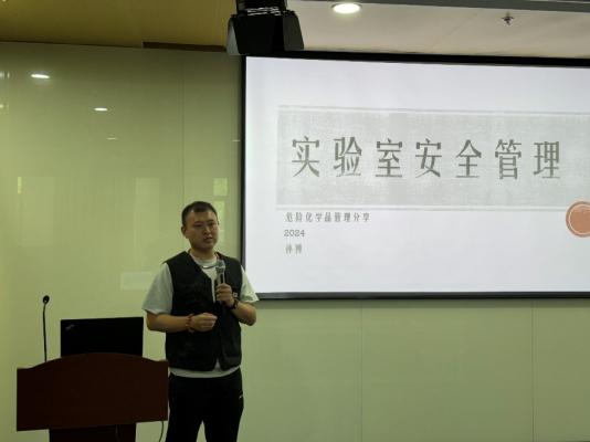实验教学中心安全员孙博老师与参会安全员分享了参加“2024实验室建设与安全管理研讨会”的学习心得,并讲解了化学类实验室安全管理经验的学习内容和实践。