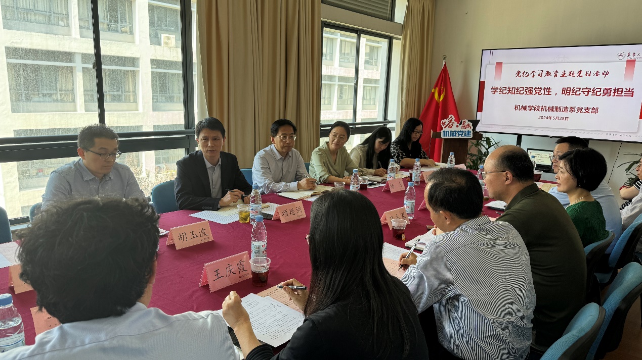 5月28日,党委副书记项延训参加机械制造系教工党支部党纪学习教育“学纪知纪强党性,明纪守纪勇担当”主题党日活动。新葡萄官网AMG党委组织部副部长胡玉波、新葡萄官网AMG党委书记王新厚、副书记杨蓉、专职党务干部黄璐以及机械制造系党支部全体党员参加。活动由机械制造系党支部书记鲍劲松主持。