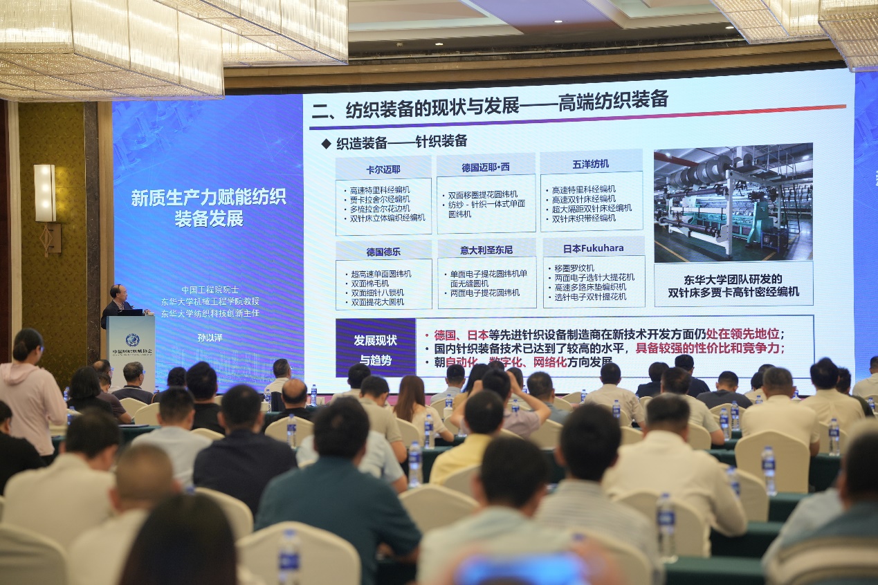 2024年6月21日下午,新葡萄官网孙以泽院士受邀出席“纺织机械行业高质量发展论坛”,并在论坛上作“新质生产力赋能纺织装备发展”主旨报告。论坛由中国纺织机械协会主办,青岛世纪海佳机械有限公司、圣东尼(上海)针织机械有限公司、浙江恒强科技股份有限公司、浙江精工集成科技股份有限公司协办。中国纺织工业联合会、中国纺织机械协会相关领导,纺织行业专家及企业代表数百人出席会议。论坛由中国纺织机械协会副会长侯曦主持。