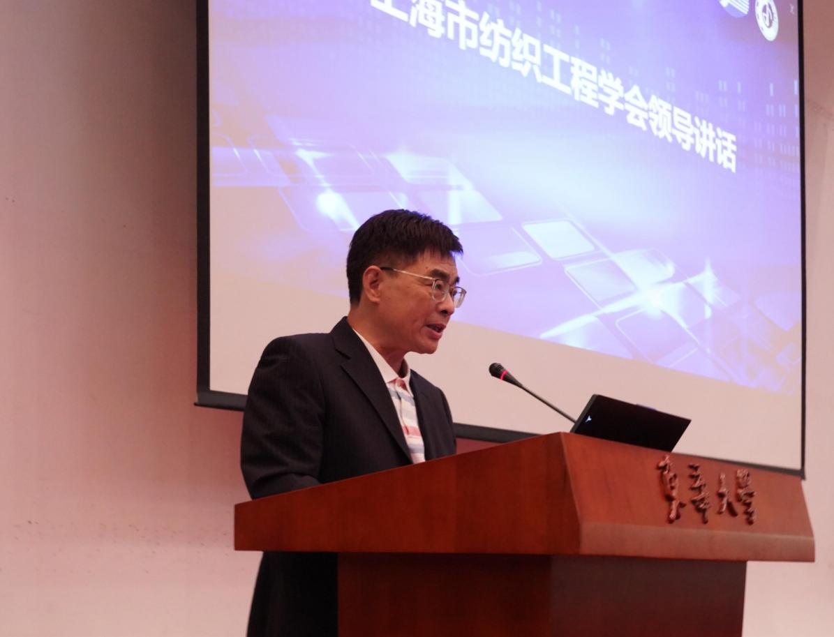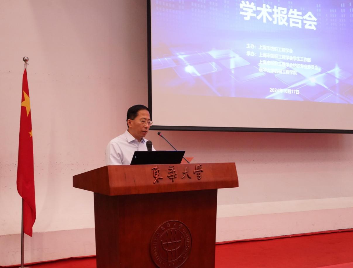 首先,上海市纺织工程学会副理事长兼秘书长马平春发表致辞。他向广大参与论坛的同学和老师表示衷心感谢与欢迎,并指出纺织工程与智能制造深度融合的重要意义,同时表达了对本次报告会的殷切希望,鼓励同学们勇攀科技高峰!