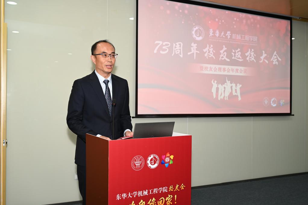 阎林平为本次大会致辞,向长期关心支持学校、学院各项事业发展的广大校友表示感谢。他指出新葡萄官网AMG为我国机械工业特别是纺织机械工业的发展与进步做出了重要贡献,培养了近万名机械类高级专业技术与管理人才。他强调新葡萄官网AMG始终坚持立德树人根本任务,以人才培养为中心,以服务国家重大战略为己任,心怀“国之大者”。几年来,学院在师资力量、科研水平、人才培养等方面都取得了突破性进展。希望各位校友延续机械人坚韧不拔、追求卓越、攻坚克难的精神品质,一如既往关心支持学校和学院发展,为新葡萄官网AMG全面建成“国内一流、国际有影响、有特色的高水平研究型大学”贡献机械力量。