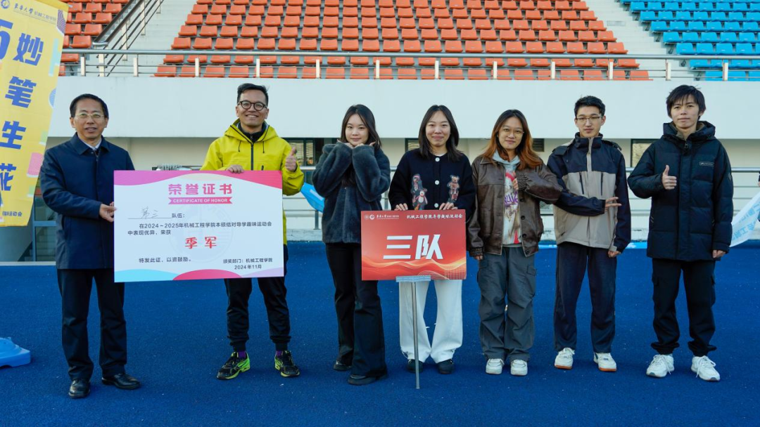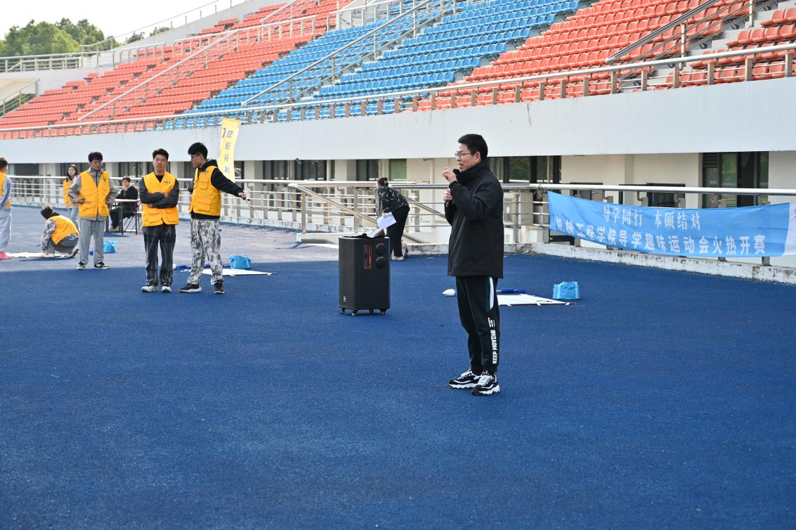 2024年11月26日,新葡萄官网AMG“导学同行,本硕结对”导学趣味运动会在刘翔体育场成功举办。本次活动旨在在强身健体的同时促进学院教师、硕博士研究生和本科生之间的交流,丰富同学们的校园文化生活,缓解紧张的学习压力,增进同学之间的友谊,增强团队凝聚力。运动会汇聚了包括高端纺织装备与机器人研究团队、高档数控装备团队在内的12个课题组,新葡萄官网AMG党委书记王新厚、院长单鸿波、党委副书记杨蓉、副院长周其洪等共同参加本次运动会。