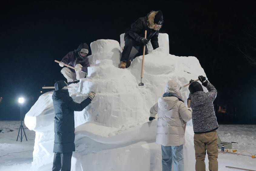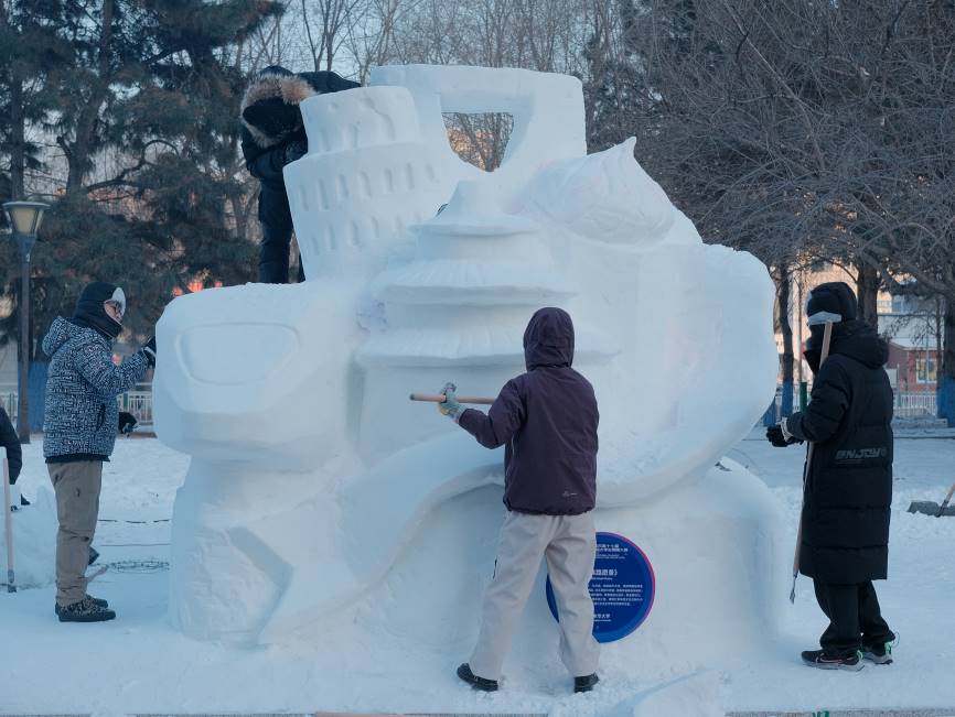 比赛现场,巨大的雪块成为团队施展才华的画布。在接近-20℃的低温中,学子们手持雕刻工具,开启了艰苦却充满激情的创作。
