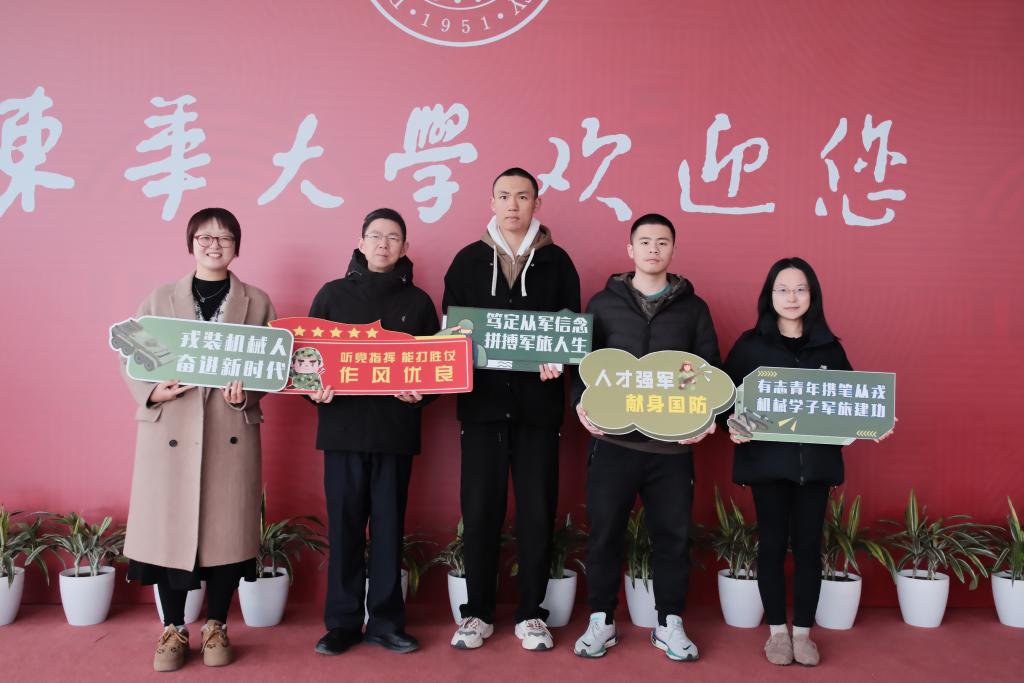 3月6日,在丁季恒、舒凡同学从学校出发前往役前训练基地之时,新葡萄官网AMG院长单鸿波亲赴现场欢送,为丁季恒、舒凡同学加油鼓劲,勉励他们在军营的大熔炉中锤炼意志力,练就过硬军事本领,忠诚报效祖国,牢记“奋进机械人”的精神内涵,以坚如磐石的信心、只争朝夕的劲头、坚韧不拔的毅力,为国防建设贡献自己的力量,做新时代人才强军战略的切身参与者。相关辅导员代表,征兵工作负责人共同参与欢送。