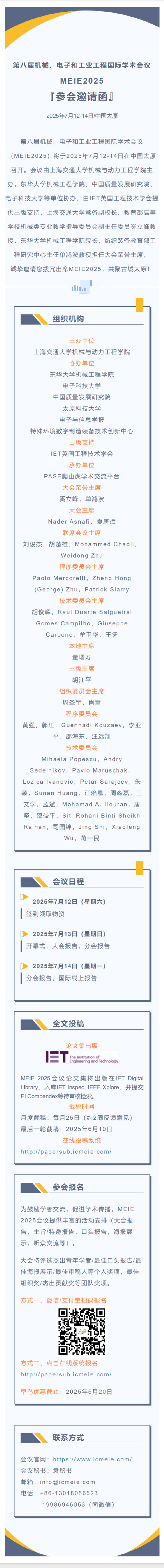 第八届机械、电子和工业工程国际学术会议 MEIE2025