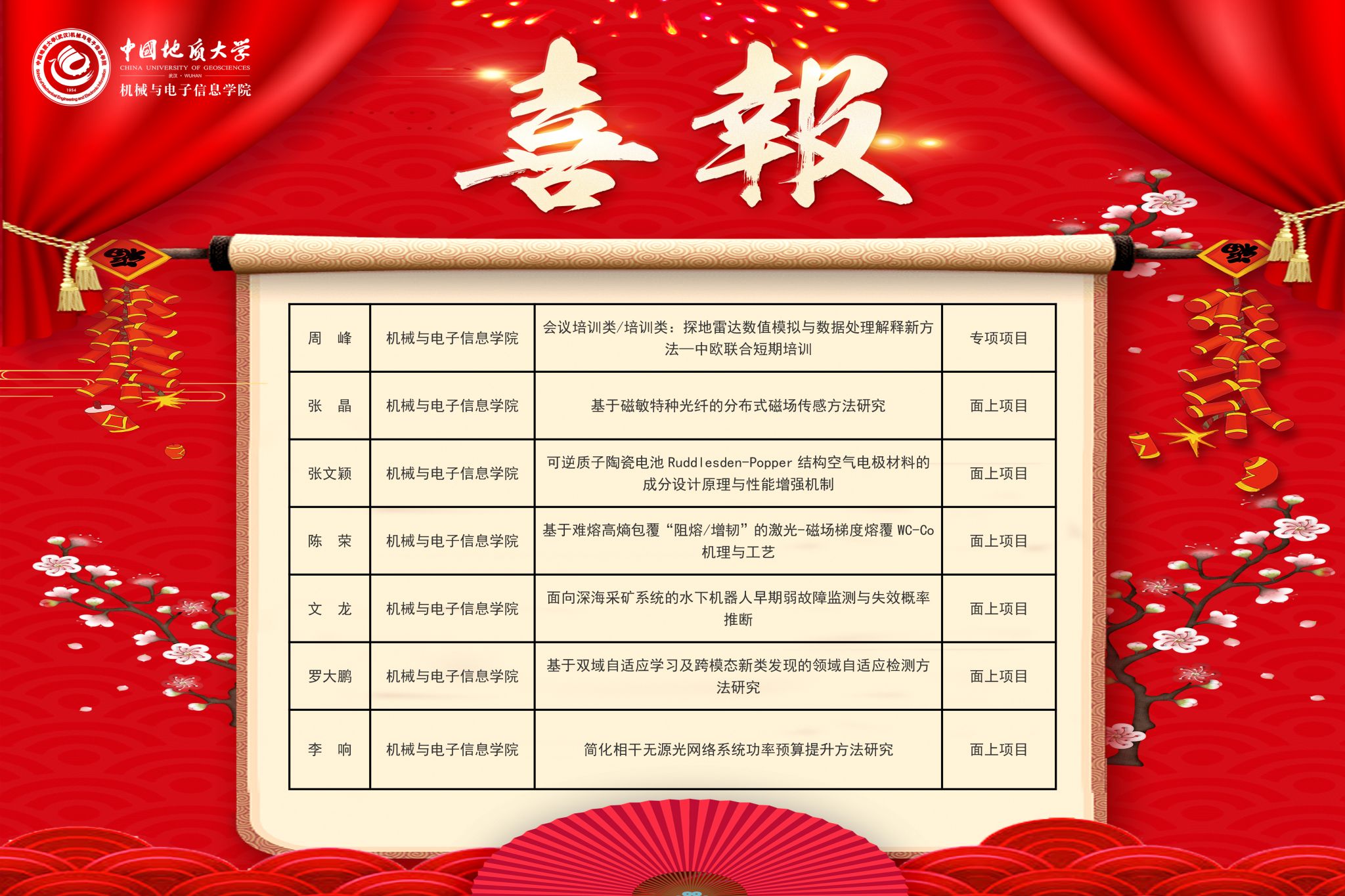 查看详情日前,国家自然科学基金委员会公布了2025年度国家自然科学基金申请项目评审结果,beat365官网共有7个项目获得资助,其中面上项目6项、专项项目1项。 周峰老师申报的《会议培训类/培训类:探地雷达数值模拟与数据处理解释新方法—中欧联合短期培训》获得专项项目资助…