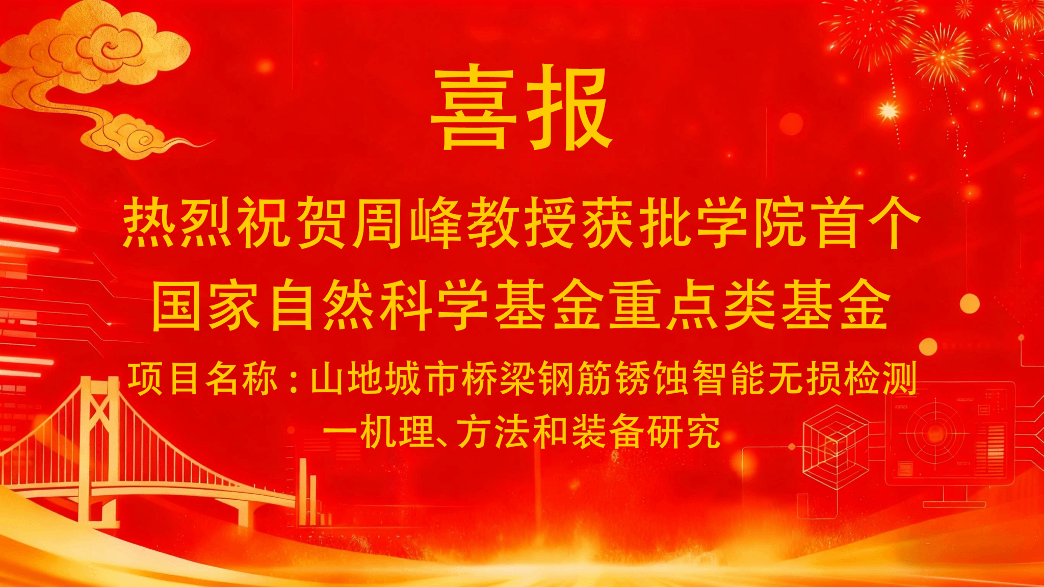 查看详情近日,国家自然科学基金委员会正式公布2025年度国家自然科学基金区域创新发展联合基金重点支持项目评审结果。beat365官网周峰老师申报的“山地城市桥梁钢筋锈蚀智能无损检测--机理、方法和装备研究”项目成功获批立项,获批直接经费达255万元。这一成果不仅实现了beat365官网在国…