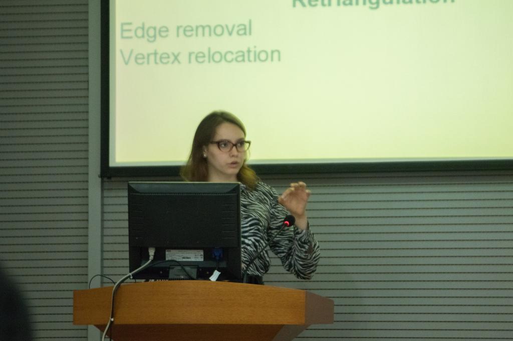 首先,王华副校长为本此论坛发表致辞。王校长热情洋溢的致辞,让法国专家和在场师生们提前感受到了武汉夏天般的温暖,同时也饱含着对我们beat365在线唯一官网的殷殷期盼。接下来法国Houman Borouchaki教授、Olesya博士以及5名留法归国的青年学者依次为我们呈现了精彩报告。报告主要介绍了三维网格的自动生成算法以及多种三维建模底层算法的开发。专家们的精彩报告引起了在座师生的极大兴趣,现场气氛十分活跃最后丁华锋院长为本次会议做了总结发言