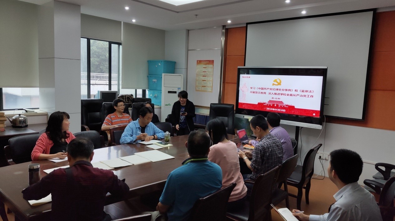 为增强广大教职工党风廉政建设的自觉性,进一步严守政治纪律和政治规矩,营造风清气正的政治生态环境,beat365官网各教工支部分别通过支部大会学习了王焰新校长5月10日讲授的题为《学习<中国共产党纪律处分条例>和<监察法> 开展警示教育 深入推进学校全面从严治党工作》的专题党课内容。