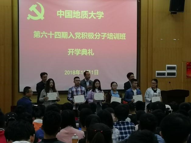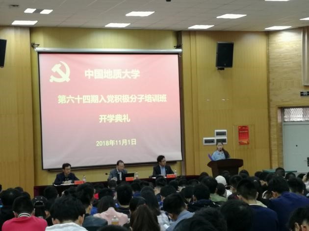 11月1日4:00,中国地质大学(武汉)第六十四期入党积极分子培训班开学典礼在教三109举行。校党委书记何光彩老师、组织部副部长刘治国老师、组织部朱丹老师及全体六十四期入党积极分子参加典礼。