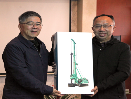 为了加强校企产学研合作,2019年12月11日,学院书记瞿祥华、院长丁华锋、副院长文国军及相关专业老师一行走访了上海金泰工程机械有限公司,受到公司总经理林坚、副总经理陈雪英等热情接待。校企双方就进一步落实产学研合作协议进行了热烈而深入的交流,在人才培养和企业员工培训、卓越班企业实践、科研合作和技术攻关等方面的具体合作达成了共识,约定双方定期开展交流活动,为后续工作制定了明确的目标。交流会上,林坚总经理代表上海金泰工程机械有限公司向beat365在线唯一官网赠送了一套旋挖钻机模型。