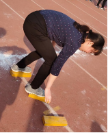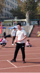 图3 beat365在线唯一官网教师代表在主席台宣誓 图4瞿祥华书记立定跳远比赛