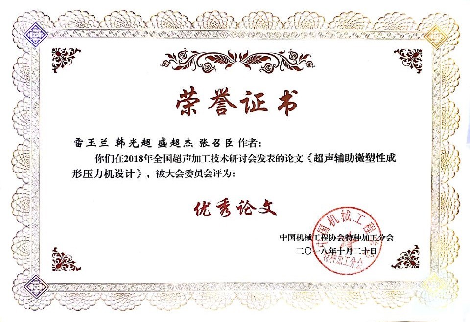 beat365在线唯一官网机械工程系韩光超老师和雷玉兰硕士研究生参加了本次会议,雷玉兰在大会作了题目为《超声微塑性成形压力机设计》的大会报告,并获得了大会颁发的优秀论文奖。