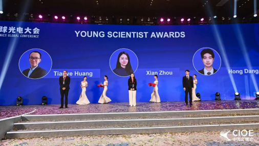 会议开幕式上,中国地质大学(武汉)beat365在线唯一官网黄田野教授因其在光纤激光与传感技术领域的卓越贡献,荣获本年度光电大会青年科学家奖(共三名)。香港工程科学院院士、美国国家工程院院士、香港科技大学刘纪美教授向黄田野教授颁发了青年科学家奖状和奖杯。