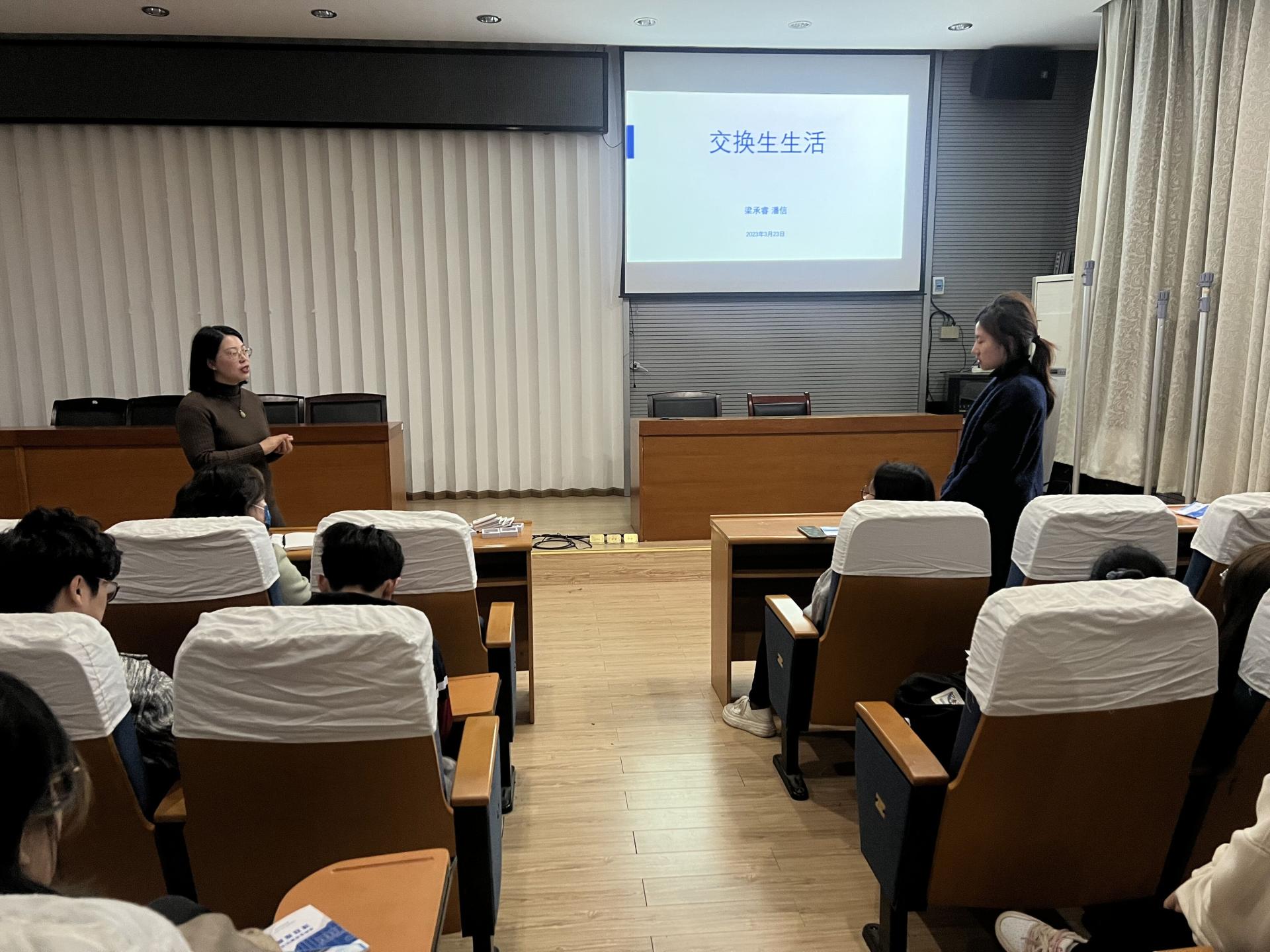 最后,曾经参加过韩国汉阳大学交换生项目的beat365官网梁承睿和潘信同学为大家分享了在汉阳大学交换学习的点点滴滴。作为学长,他们分享了在韩国的学习、考试、生活、当地文化体验,还为学弟学妹们制作了申请策略,提供了参加国际交流的时间规划参考。梁承睿同学还为大家分享了自己制作的视频,他用精彩的短片记录了自己的交换生生活和韩国济州岛之行,并鼓励学弟学妹们只要想出国,不要害怕,勇敢迈出第一步。