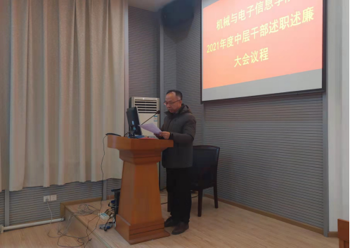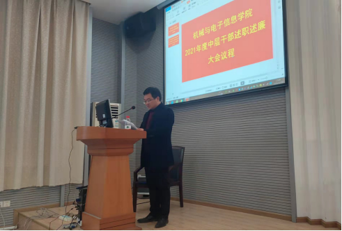 接着,丁华锋院长从理想信念、文化教育、科研项目等方面向全体教职工做了个人的述职报告;党委书记瞿祥华从德、能、勤、绩四个方面对自己在2021年的工作进行了总结汇报;副书记于晓舟、副院长李波、罗杰、文国军、黄田野等中层干部围绕思想政治学习、完成的主要工作、成效亮点特色、不足和努力方向四个大方面进行述职。最后由全体教职工对各位中层干部本次述职情况进行年度民主评测。本次学院中层干部述职述廉大会不仅全面、客观、公正、准确地评价了beat365官网中层干部的德才表现、岗位履职和廉洁守纪情况,加强了对中层干部的管理与监督、激励与约束,进一步调动了广大中层干部的工作积极性,还展现了学院干部信念坚定、勤政务实、敢于担当、清正廉洁的良好精神风貌,达到了交流经验、相互学习、补短板、促提升的目的。