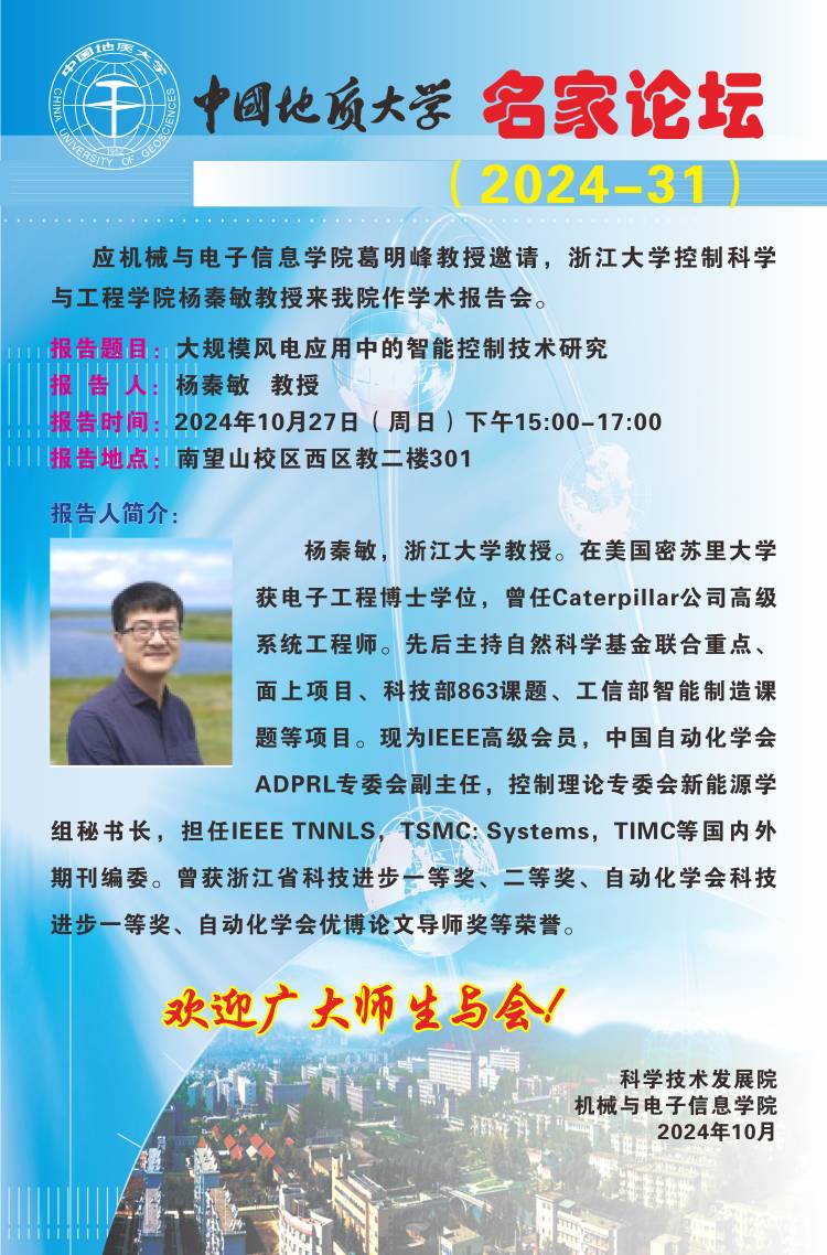 【10月27日】名家论坛(2024-31):浙江大学杨秦敏教授