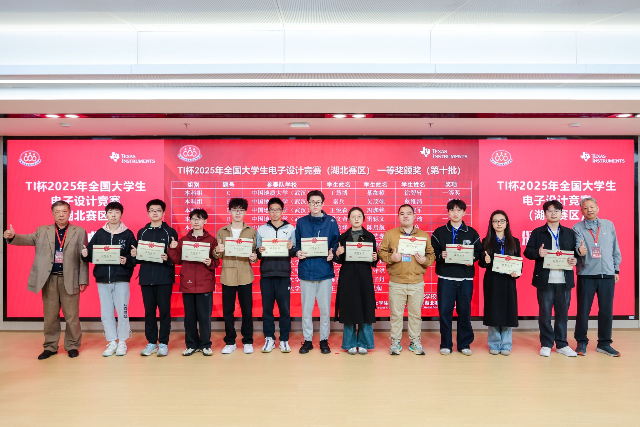 2025年全国大学生电子设计竞赛湖北赛区颁奖大会于11月2日在武汉大学召开。会上beat365官网秦兵等7位同学作为湖北省一等奖获奖代表上台领奖。beat365官网因组织有力与学生参赛成绩突出,获得“优秀组织奖”。在2025年全国大学生电子设计竞赛中,beat365官网共组织177位电子信息工程、通信工程、机械设计制造及其自动化等专业的本科生参赛,获得全国一等奖1项、全国二等奖1项、湖北省一等奖7项、湖北省二等奖15项、湖北省三等奖15项。