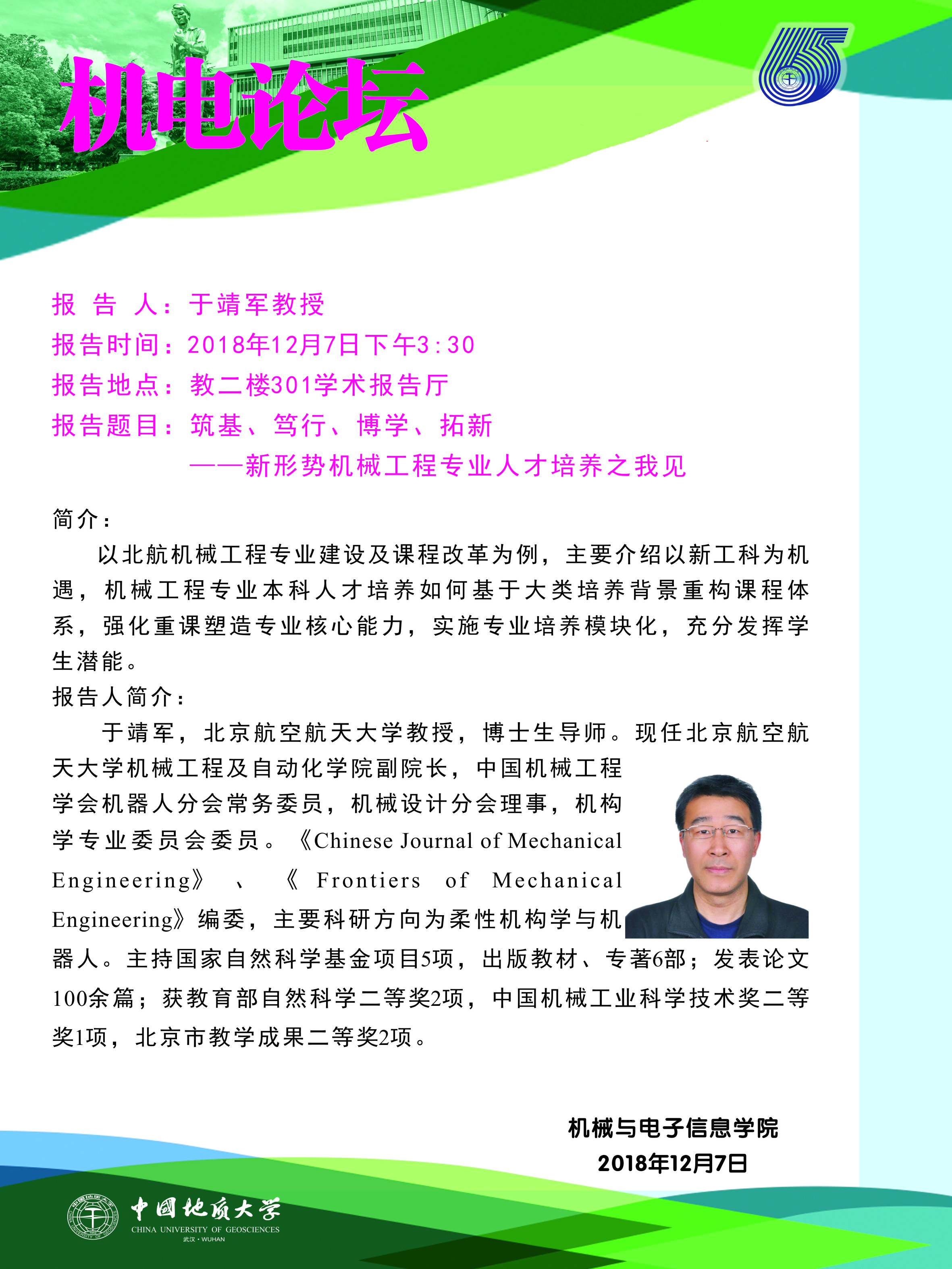 机电论坛:北航于靖军教授来beat365官网作报告