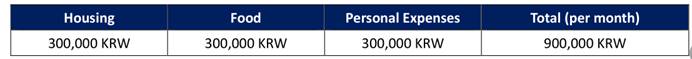 4. 费用:免学费,住宿费学院按照6000元人民币/人(安山校区)、12000元人民币/人(首尔校区)标准予以资助,其他费用自理。