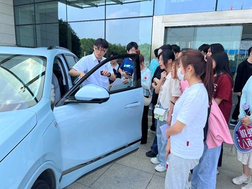 随后,在工程师的带领下,同学们实地参观了上汽通用的BDU产线、技师工作室,对自动化车间的生产过程有了新的认识。最后试乘别克新款纯电动车型“别克E5”,让同学们切实感受新能源汽车的功能特点,了解新能源汽车在续航、内饰、设计上的创新之处。