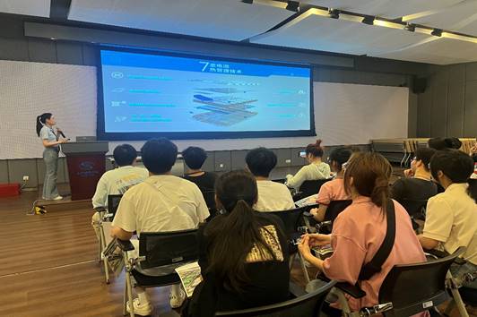 新能源产品专家严琼向师生们介绍了上汽通用的发展历程和企业架构,特别从双碳背景下新能源汽车的战略部署、新能源电池方向技术、产品质量进行详细介绍。