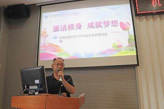 6月20日下午,beat365在线唯一官网2022届毕业生党员廉洁教育大会在教二楼301举行。学院党委书记瞿祥华出席大会,全体毕业生党员参加大会,学院学生党建工作辅导员刘彪主持大会。