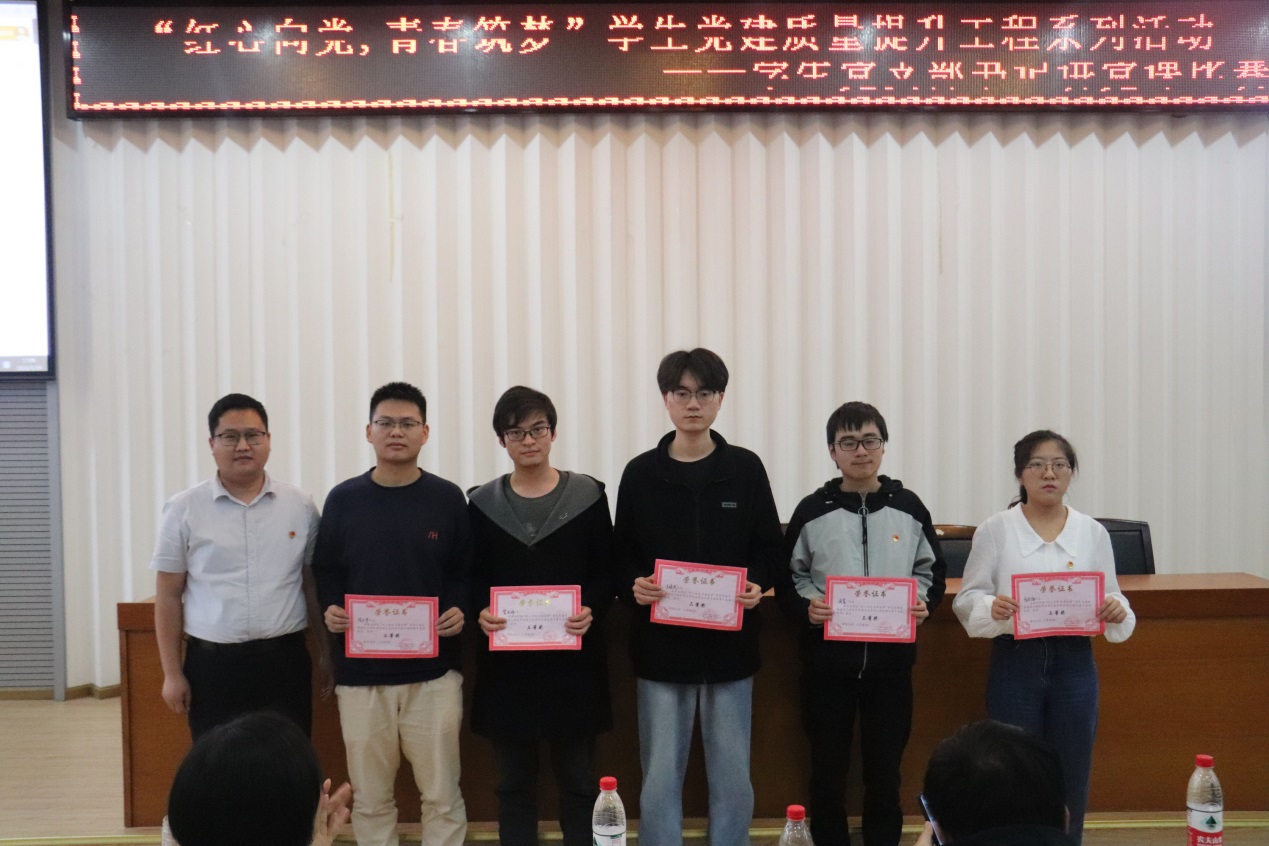 519日下午,学院“红心向党,青春有梦”学生党建质量提升工程系列活动之党支部书记讲党课比赛在教二楼301举行。学院党委副书记于晓舟,学院教职工党支部书记、学工组辅导员和学生党员代表现场观摩比赛。
