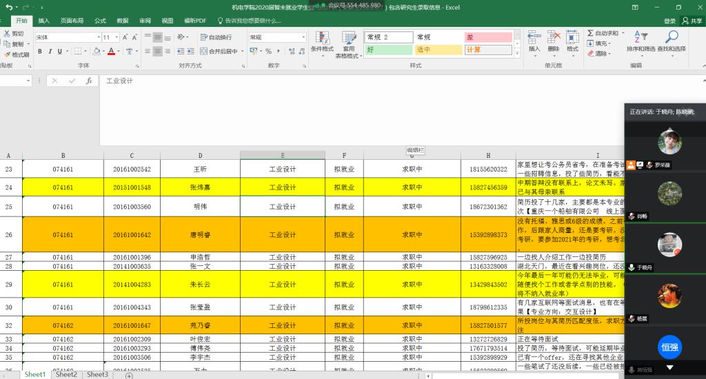 为促进工业设计专业2020届本科生就业工作,6月8日早上,学院党委副书记于晓舟、副院长文国军召集工业设计系领导班子、毕业班班主任、毕业生辅导员就该专业本科生就业问题进行专题研讨。辅导员罗采薇首先从工业设计各班就业率、学生求职、二战、出国情况以及重难点个案等三个方面汇报了目前工业设计未就业学生情况。随后,工业设计系党支部书记肖畅、系主任陈晓郦、副主任张彬彬、班主任高恒强、杨展等几位老师分别交流了前期与学生沟通情况、尚未就业学生存在的学业问题、目前工作中的难点以及后续工作设想。