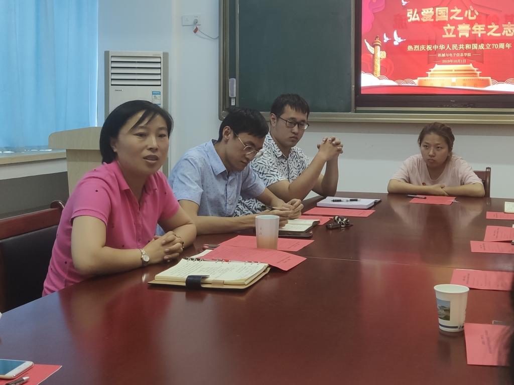 下午3点,beat365在线唯一官网在教二楼502会议室召开庆祝中华人民共和国成立70周年座谈会,学院党委副书记于晓舟、团委书记杜育、辅导员丁钰峰及学院研究生、本科生代表共计20余人参加座谈会。杜育主持座谈会。