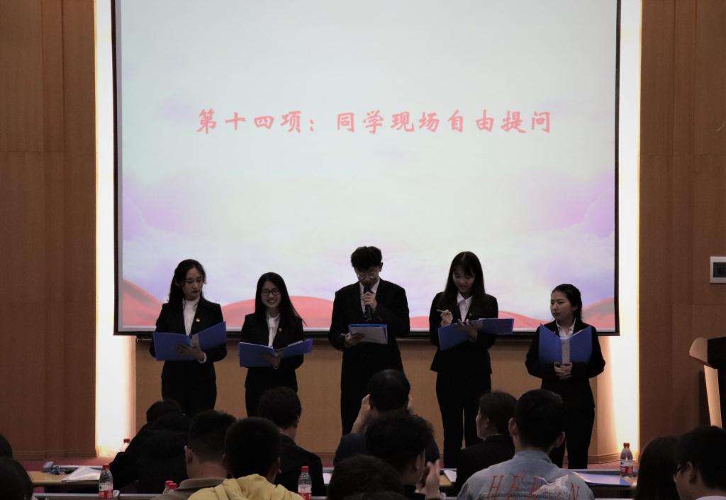 大会第十二项,2019届主席团预选候选人进行答辩。1号候选人闫樨霖,她认为学生会主席团有沟通桥梁的作用,提倡要提前培养有理想有才干的同学,建立好活动反馈机制,建议学术部开展有beat365在线唯一官网专业特色的活动。2号候选人周子璇,她提倡优化学风建设和内部建设,完善制度、规范动作,要落实考核方案以保证工作质量,广泛收集同学们的意见和建议,开展学术分享会。3号候选人单博阳,他希望可以打造部门品牌活动,并积极去外出调研,学习外校的优点,沉淀自身的文化。4号候选人张依依,她提出通过设立优秀人物专栏,向学生推荐学习对象,营造科技文化氛围,加强人才培养,定期进行副部头脑风暴。5号候选人孙灿,她认为学生会是一棵树,每一部分都是有机的联系,并提出优化学术环境,创办学术电子周刊,扩大情歌大赛等活动的受众面。