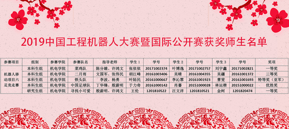 [2019.6]2019年中国工程机器人大赛暨国际公开赛获奖师生名单