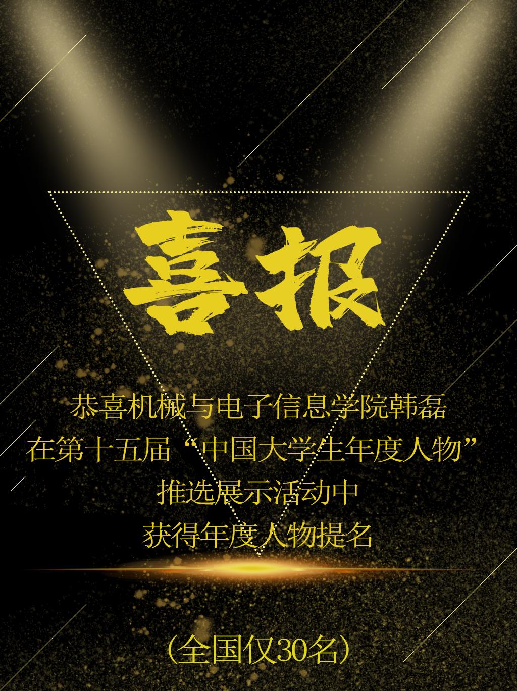 [2020.10]beat365官网韩磊同学获第十五届“中国大学生年度人物”人物提名