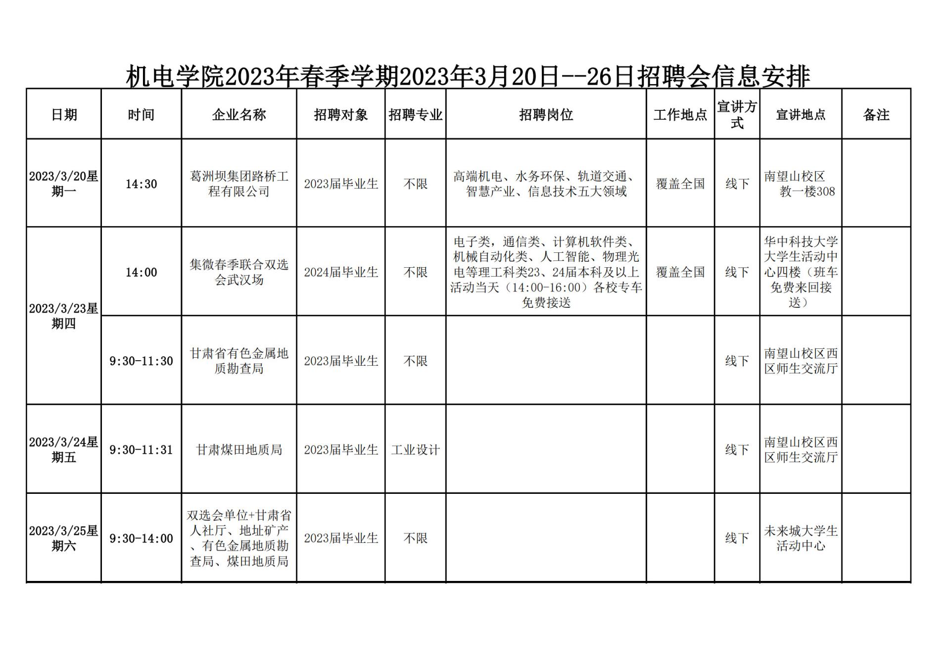 【毕业生·2023年3月20日--26日招聘会信息】